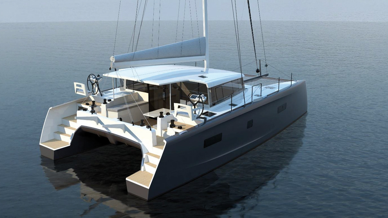 Announced last winter at the Paris Boat Show, the new catamaran from Dufour is a modern boat designed by Umberto Felci. 48 feet long, it picks up the company’s main features with the hull lines with a slight reveal, the shape of the portlights and a clear deck plan, to enjoy the boat to the full. The mast is positioned well aft, which allows a 72m² mainsail and a 48m² self-tacking jib to be offered, which will greatly simplify maneuvers. The Dufour 48 offers a large flybridge, two sunbathing areas forward and a functional cockpit, the perfect extension to the saloon. The Dufour 48 will be presented at Cannes, for its world premiere.