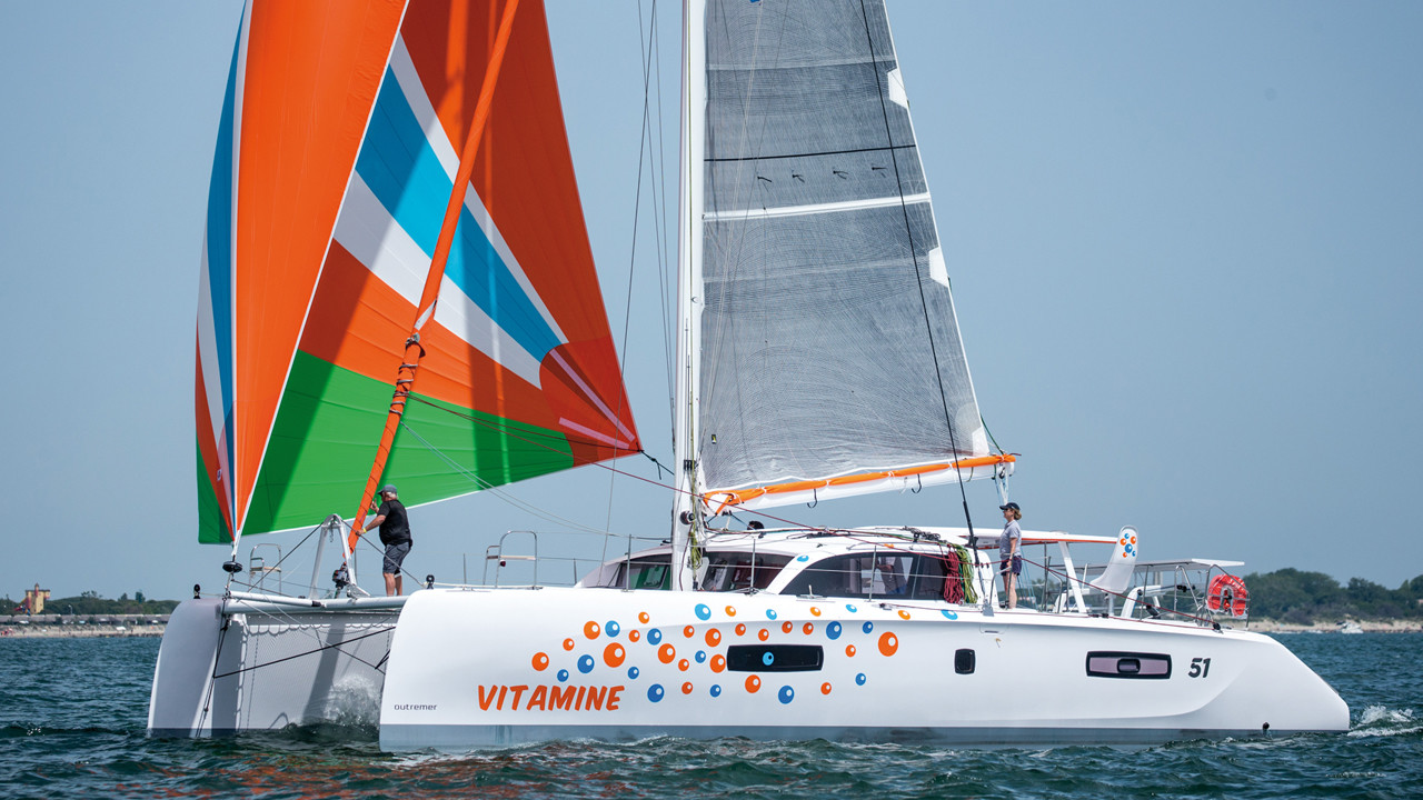 We discovered it at the International Multihull Show last April, and you can admire it again at Cannes and Barcelona. The new Outremer 51, the third generation, offers new lines designed by Patrick le Quément, while the interior has been redesigned by the team from Darnet Design, which has modernized notably the galley and the chart table, to make them even more ergonomic. But the builder has also done a lot of work on the construction to save weight and increase – again – the performance of this fast ocean cruising boat.