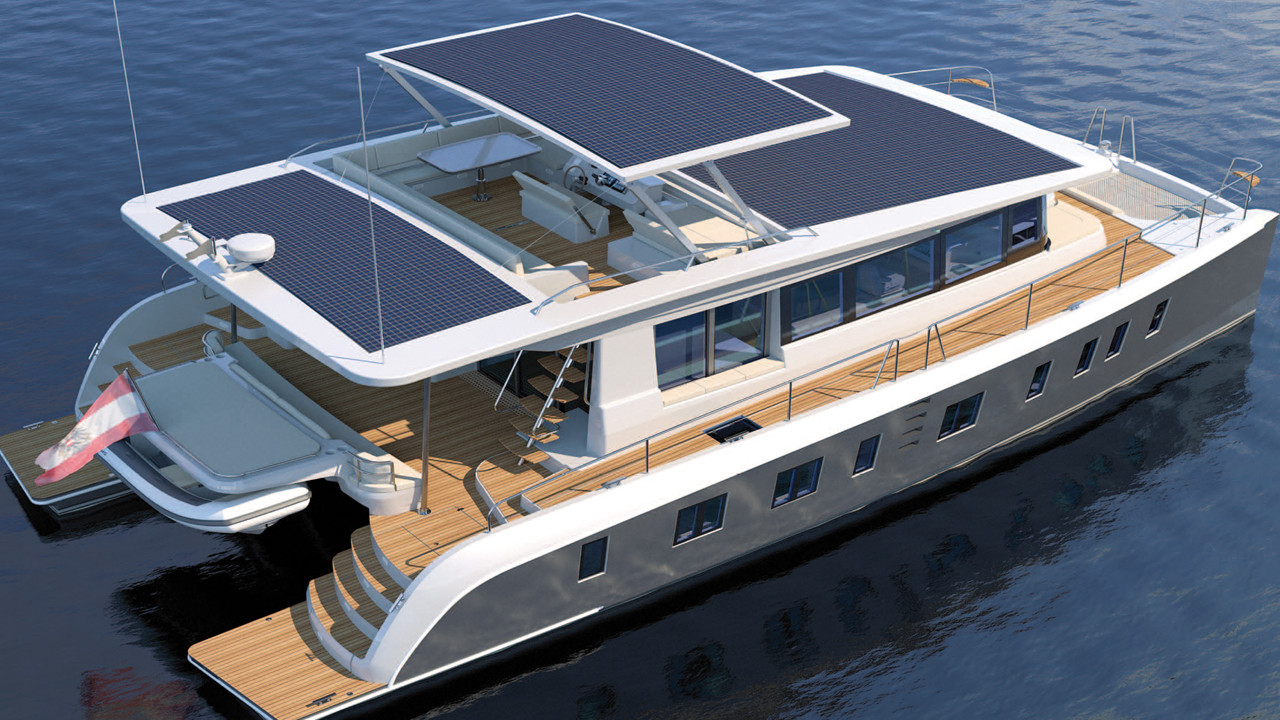 The Silent 55 is an atypical boat in today’s nautical landscape, as it uses no fossil energy. Equipped with solar panels, and an impressive battery bank, it can reach a top speed of 12 to 20 knots, with a cruising speed of 6/8 to 12/15 knots, depending on the motors chosen (2 x 30kW or 2 x 135 kW). The Silent 55 can even be equipped with a classic rig, to increase its range and be literally completely independent. A really innovative catamaran to discover at Cannes.