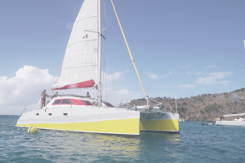 Before, this catamaran was called Ti Jon, which means “little yellow one” in creole. It was part of a fleet of four Punch that belonged to the Martinique UCPA, and which were all named based upon their color (Little Blue, Little Yellow, etc).”