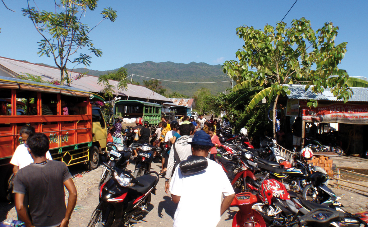 I had read somewhere that around ten kilometers to the east of Maumere there was a little hotel on the edge of the beach, where we could anchor in complete safety in front of it, to go and visit the main town of Flores and the interior of the island. It bears the slightly ambitious name of the Sea World Club, and we finally found it, hidden under the palm trees. We dropped anchor in around thirty meters of water in front of the straw hut bungalows, surrounded by superb bougainvillaea. The Sea World Club is a modest hotel establishment which includes a small diving club, a beach bar and reasonably-priced internet access, in addition to an anchorage whose safety was guaranteed by the presence of the local hotel personnel: exactly what we were looking for, as we wanted to leave our boat at anchor to explore the interior of the island. We piled into a bemo to get to Maumere. The town is not particularly attractive, but we went to the harbor to watch the local schooners unload. The derrick cables squealed in their pulleys, the dark-skinned dockers operated the guys, diesel-powered winches filled the air with decibels, the sacks of rice piled up in the holds, destination Java or Sumatra. It reminded me of my first profession as a Merchant Navy officer, which I liked! We had lunch in a warong at the harbor, next to dockers and customs officers in uniform. We found the pasar, the fruit, vegetable, meat and fish market – particularly odorous but well-stocked. I freely confess that it’s one of my favorite activities when cruising - strolling round the local markets. This allows me to quickly get an idea of the local standard of living, the richness of the country, and to feel the spirit of a community. In a few minutes, you can learn a lot of things. I love it.