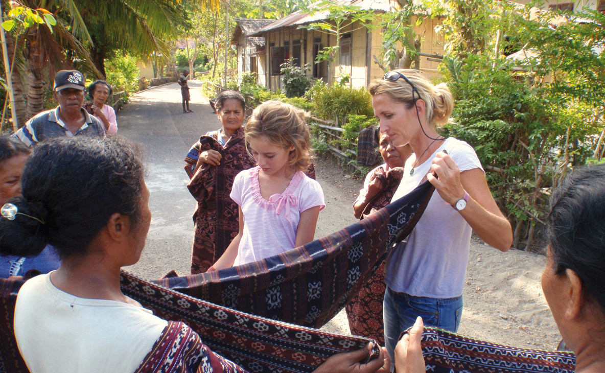 We reached the coastal village of Sikka, one of the first colonies established by the Portuguese on Flores. A fishing village with wooden houses built on the black rocks and the dark sand of the shore. At Sikka, there is not a single woman who, in addition to her daily housework, is not weaving an ikat in a corner of her house or garden. When we arrived, they recognized our driver, whose parents lived in the village.