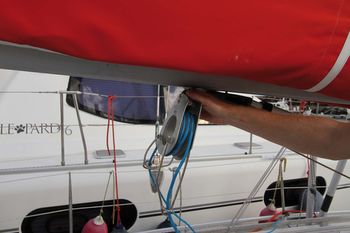 Crossing the Atlantic - more specifically, heading for the Caribbean - means downwind sailing, which may entail frequent gybing. To avoid the risk of breakages (gooseneck, battens and so on), the boom brake has many fans. The use of a padeye at the gunwale allows the mainsheet to be attached with a better angle of pull, favoring good control of the mainsail leech, and easing the load on the vang… Note: newer models, more inconspicuous and aesthetic, have been available for some years.