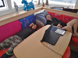 A fantastic crew The five of us had been together 24/7 for five months by now, with just about all of that time spent sailing on a boat. We had become aware of something special and not necessarily so obvious: life was not always easy on board. The more the time passed, the more we realized what this mission was all about: bringing Maitai to Mayotte from Les Sables d’Olonne. And with three young people who had never sailed before, it had been a struggle at times.... We had already gone through some difficult moments, and twice on the same ocean. I can confirm that at sea, you have time to think. You find yourself having to deal with your demons, and there’s no escape. We evolve by facing up to shortcomings, and by permanently questioning ourselves. It does us no harm as human beings. You have to go through it and you inevitably come out of it stronger. Let’s just say that being at sea hastens things along. What a team! The Captain and his little ants... We knew each other better than ever before, for better and sometimes worse - but it was beautiful. We bonded and moved forward together, giving each other a lot of love and compassion, despite the difficulties and the urge to arrive at our destination. I never thought that I would be able to depend upon Max and Lisa to such an extent. My father, despite his responsibilities, the stress of the boat and the four crazy kids on board, was taking on more than ever - he was magical. César, at last, proved to be a quiet, surprising and wonderful force in the face of the whirlwind that I can be at times.