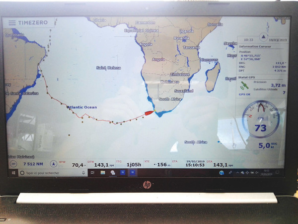 Maitai approaching the South African coast. We’ve already clocked up 7,512 miles since Les Sables d’Olonne!