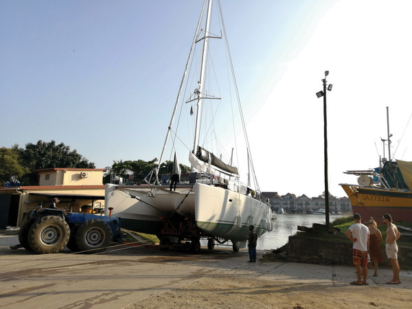 Getting Maitai out of the water at Richard’s Bay, ready to get the sail drive repaired and to be antifouled