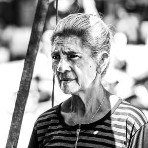 An Indonesian face, wrinkled by non-stop hard work, at the heart of the markets.
