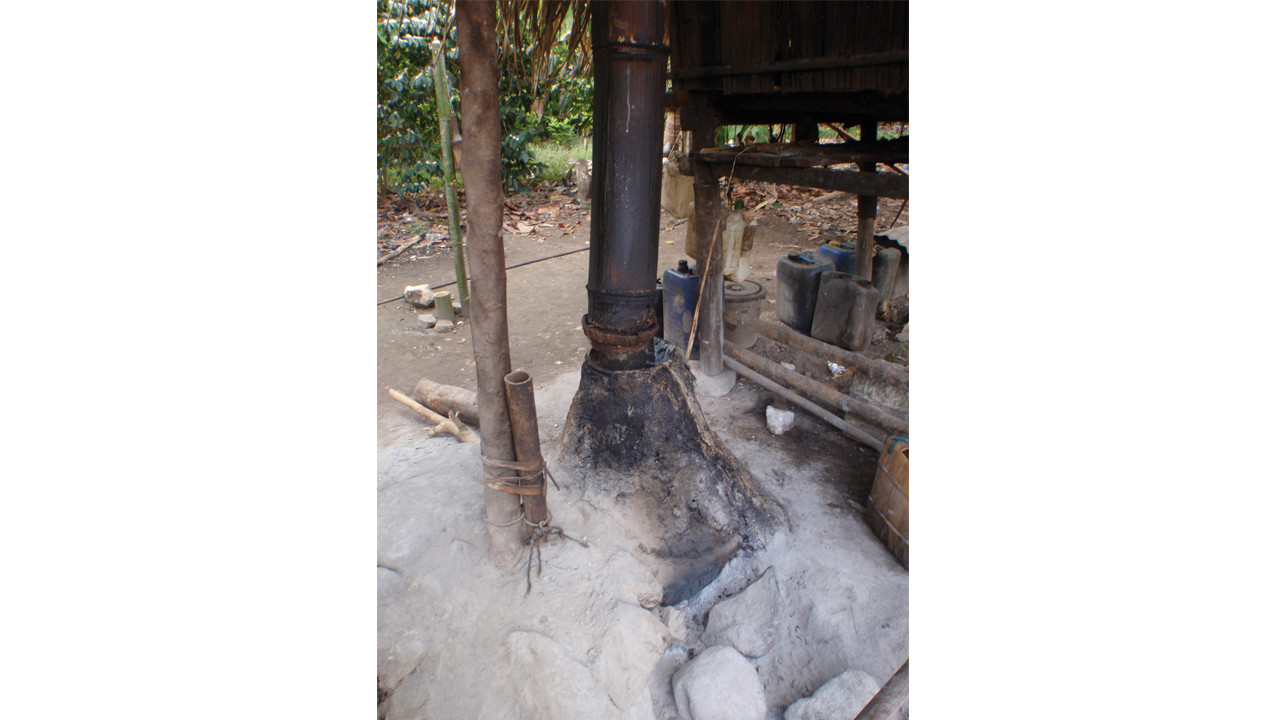 The bemo wheezed slowly up the hills, mainly in first gear. We reached the furthest hamlet where just a few families lived in traditional wooden houses with palm roofs. Surprised men with craggy faces watched us get out of the bemo. When Vincent explained that the reason for our visit is to see arrack being made, their faces beam with delight and pride. They lead us off a few dozen meters, away from the houses. We find a very basic distillery set up. Arrack is a distilled palm alcohol. There is also a palm wine which is called “tuak” which is nowhere near as strong, and a rice wine known as “brem”. The word “arrack” denotes palm alcohol as well as rice alcohol. This is why I think the generic word “arrack” is similar to the French “eau de vie”. Schnapps or hooch… Palm arrack is made using the juice of the male fruit of a particular type of palm. The primitive still is situated under an open shelter where there is a small open fire fuelled by wood and coir, which is abundant in the region. The heating column was made from a large piece of bamboo, about 2m high and was fixed right over the heat. The alcoholic vapors are directed up to another piece of bamboo, about 10cm wide which works as an atmospheric condenser, which is not water-cooled. The tube descends from the top of the column at an angle of 45°. The condensed vapors which make the Arrack are collected in a stone pot at the end of the bamboo condensing pipe. The liquid which is obtained, which must be around 40° proof is then stored in small plastic containers. It really is a basic set-up, which surprises me somewhat, given the organized way that the Indonesians generally develop their local skills, of which there are many and there is a huge amount of knowledge. Next to the rustic still, there is a stick of bamboo sticking out of the ground. On top there is a candle, and a small bowl at the bottom with some arrack in it, as an offering to some god or other.