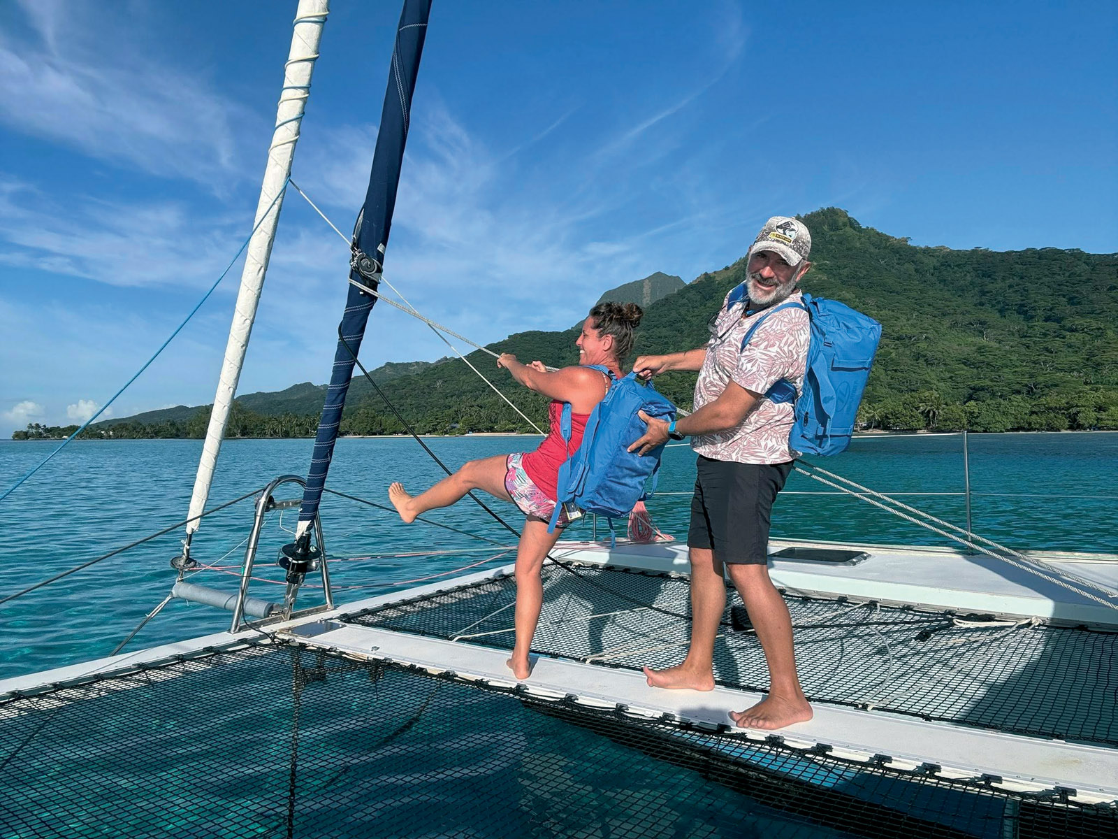 Since 2010, Magalie and Cyril have been sailing the oceans around the world. Their first circumnavigation took them six years, with their son Jonathan, who has since set sail on his own! A second trip around the world began in 2018 and was to last seven years. They returned to Nouméa, their home port, on July 9 this year.