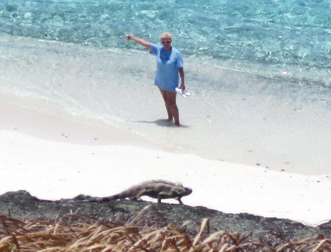 When I took this photo at Jamesby in the Tobago Cays, I hadn’t seen the iguana, even though it was in the center of the image.