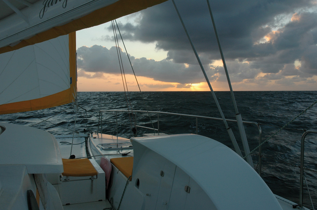 Approaching the south-western tip of the island of Timor, the wind was blowing at a steady 25 knots, which was not ideal for us. The small channel which separates Timor from the island of Semau was full of fishing boats, which made passing through at night much more complicated. We tried to hold our position about 20 miles out, but kept drifting off at around 3 knots. I decided to get a couple of hours sleep, and then with the situation still uncomfortable, unfurled a bit of sail and headed for the strait. The night was pitch black, and when we saw the tip of Timor whilst still sailing close-hauled, Marin and I saw a more or less continuous barrage of fishing boats that were working under lights. This depressing situation put pressure on the crew of Jangada, as we didn’t know what kind of set up these boats were working with and the strait was only a few short miles wide. With my skipper’s hat on, thinking of all the potential crises that could arise, I imagined us having to make tricky, last minute manœuvres, nets getting caught in our skegs and propellers, and some angry Indonesian fishermen shouting at us in the night…