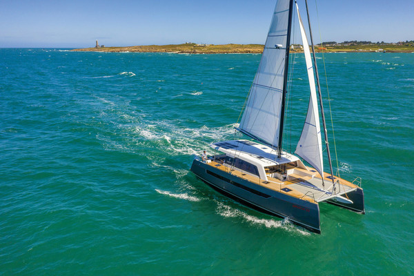In the 1970s, in the heart of the Normandy countryside, far from the sea, the Garcia brothers began building aluminum boats. Talented metalworkers, their beautifully shaped hulls quickly left behind the amateur constructions that had done so much damage to the material’s reputation. Fervent supporters of the monohull, and more precisely of the centerboarder, their short and fruitless industrial adventure with Yapluka catamarans wasn’t going to make them switch allegiance. That said, the brand became part of the Grand Large Yachting group in 2010, and nevertheless put its name to hull #2 of the SC 48, initially produced by Alumarine. Exhibited at the International Multihull Show at La Grande Motte, France, in 2015, it met more with critical success than commercial success. The appeal of the concept and the program were there, but the answer wasn’t completely seductive just yet.