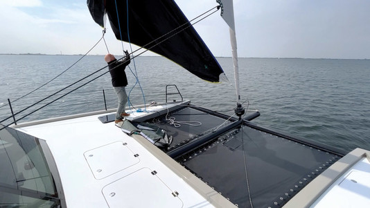 The foredeck is entirely dedicated to maneuvers: the two trampolines are very big.