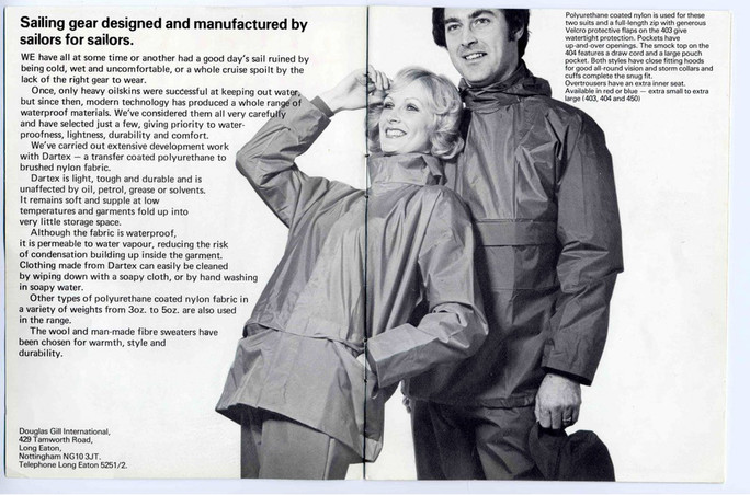 1975: One of the very first adverts for the first marine clothing manufactured by Nick Gill in his father’s lace workshop in Nottingham.