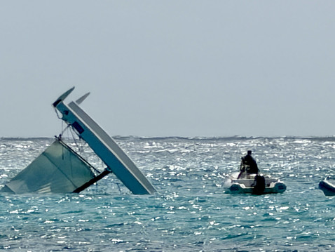 Today, more than 130 boats are sailing all over the world, and one of the most active fleets is based in Saint Martin – in Philipsburg, to be precise. It was here that the Caribbean Multihull Challenge organized some spectacular inshore races for the third day of the competition. With a steady 20-knot trade wind, all eight crews reefed their sails – which didn't prevent a capsize in the very first race. The safety dinghies righted the trimaran thanks to Vianney's advice – no damage to report, and the Diam 24 was back on track for the second race!