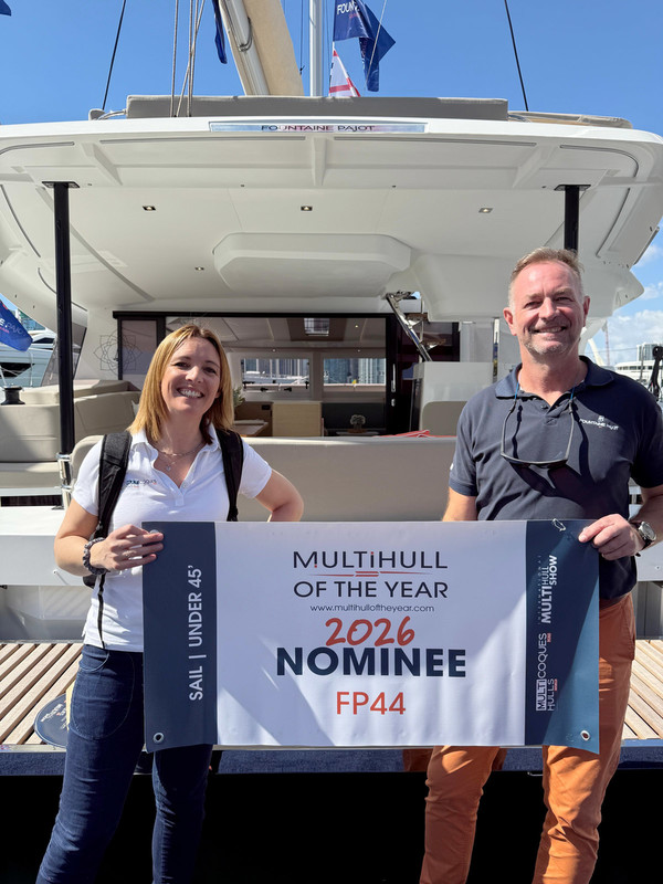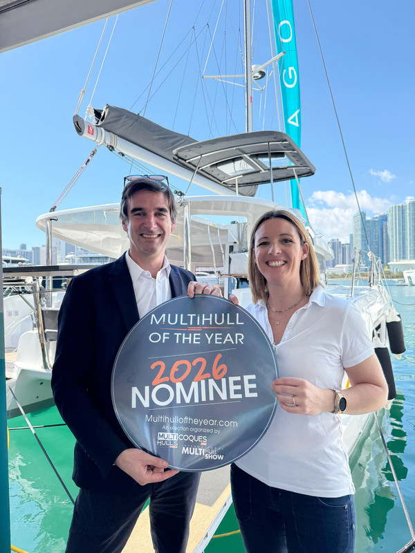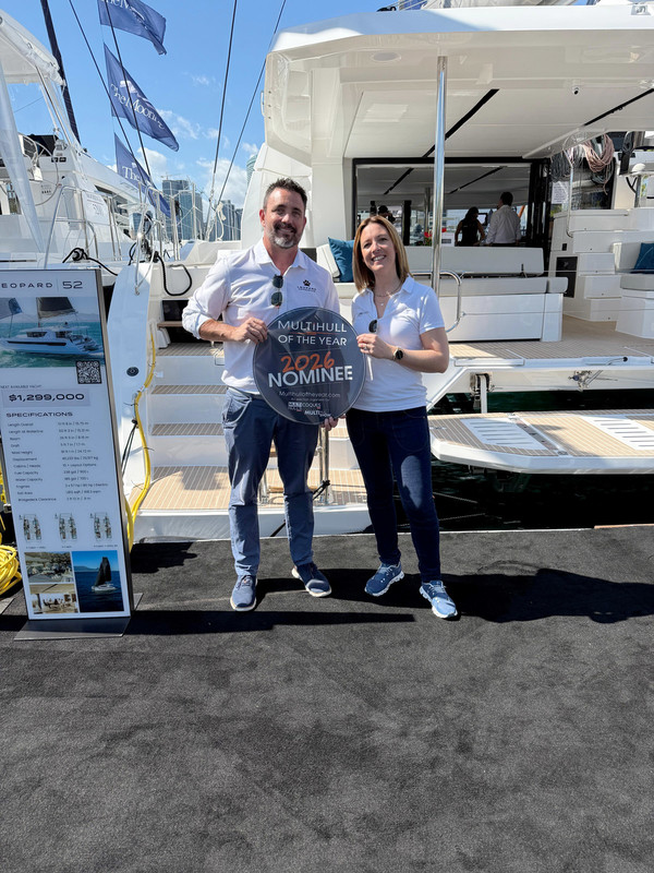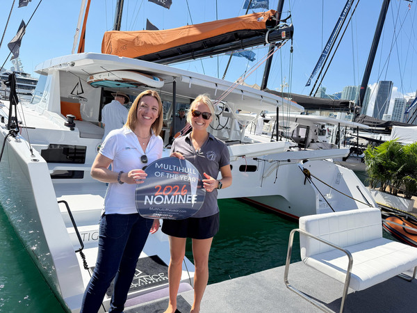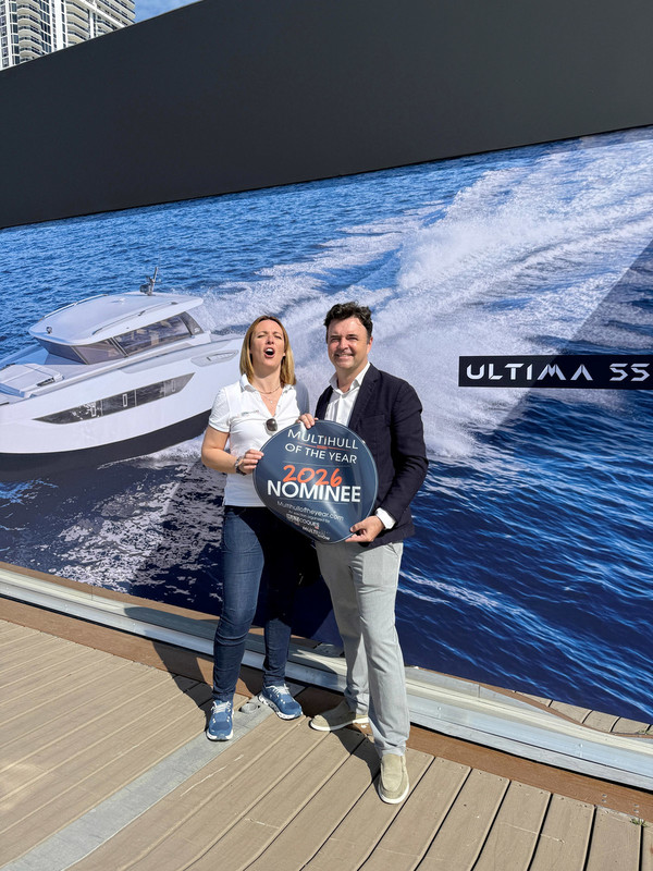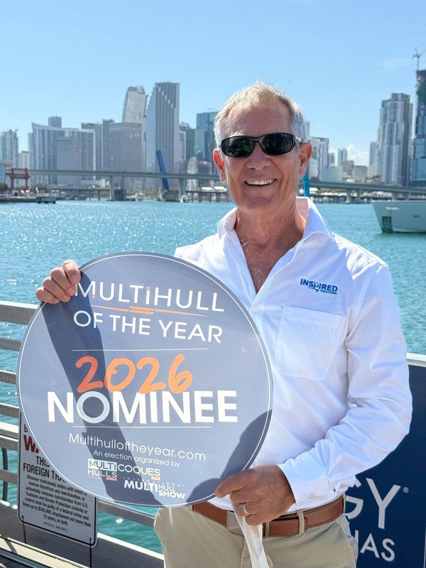 The 2026 edition of the Miami International Boat Show got off to a flying start. Under brilliant sunshine, I handed out all my Multihull of the Year stickers and banners — much to the delight of the builders present. Of the 36 nominees this year, 18 had made the trip, giving this new edition strong visibility from day one.